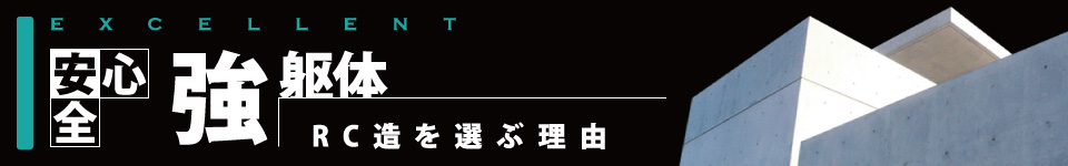 RC造(鉄筋コンクリート造)建築は、引っ張りに対する力に強い鉄筋と、圧縮に対する力に強いコンクリートの特色を併せ持った構造の建物です。耐震性・耐久性・耐火性・耐候性・遮音性などは、他の建築物よりもはるかに優れており、災害時の避難場所のほとんどは、RC造(鉄筋コンクリート造)です。